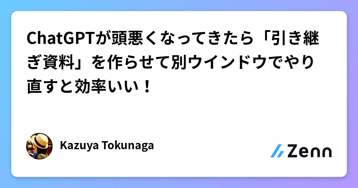 ChatGPTが頭悪くなってきたら「引き継ぎ資料」を作らせて別ウインドウでやり直すと効率いい!